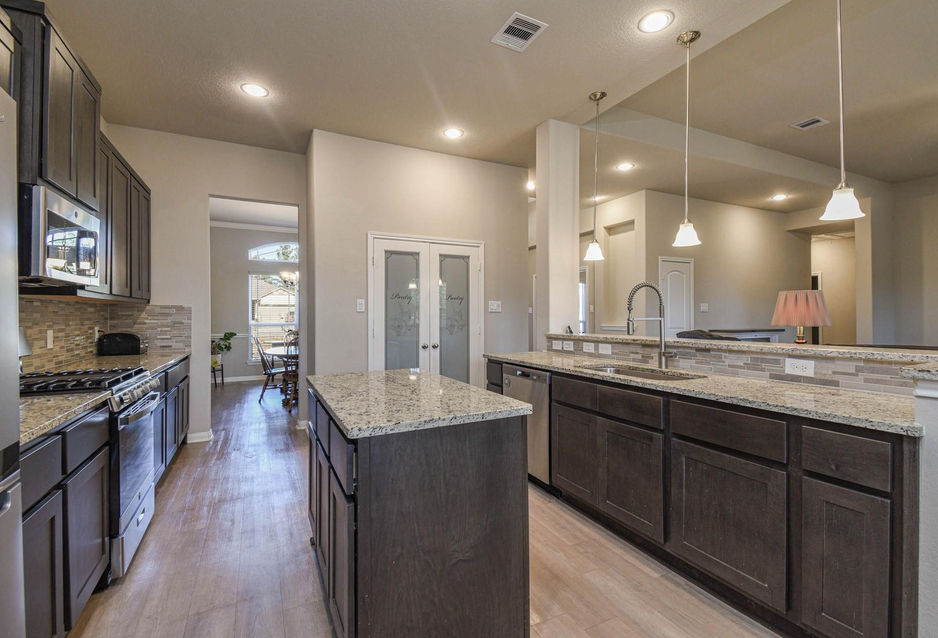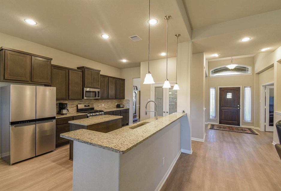 This stunning home at 16350 Ellis St. is a Kendall Homes, Montgomery floor plan, situated on a wooded 1+ acre lot, With a spacious kitchen featuring granite countertops, an island & breakfast bar that opens to the grand living room with high ceilings is perfect for entertaining. This home also includes special up grades that you don't want to miss out on. There's a full house water filtration system, fully owned solar panels that contribute up to25% of the electricity to the home.The high end stainless steel refrigerator as well as washer & dryer are included,The primary bedroom boasts vaulted ceilings, A luxurious en-suite. Additional features include RevWood Laminate flooring , an oversized three-car garage, workshop space, and automatic lawn sprinkler system.The double wide driveway is extended to accommodate large travel-trailers. There is an electrical plug (50 Amp) for your trailer hookup. Don't miss out on this unique opportunity book an appointment today! 2-1 interest buy-down